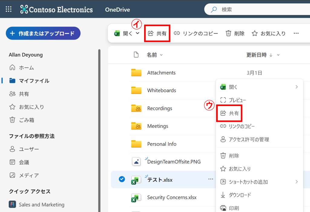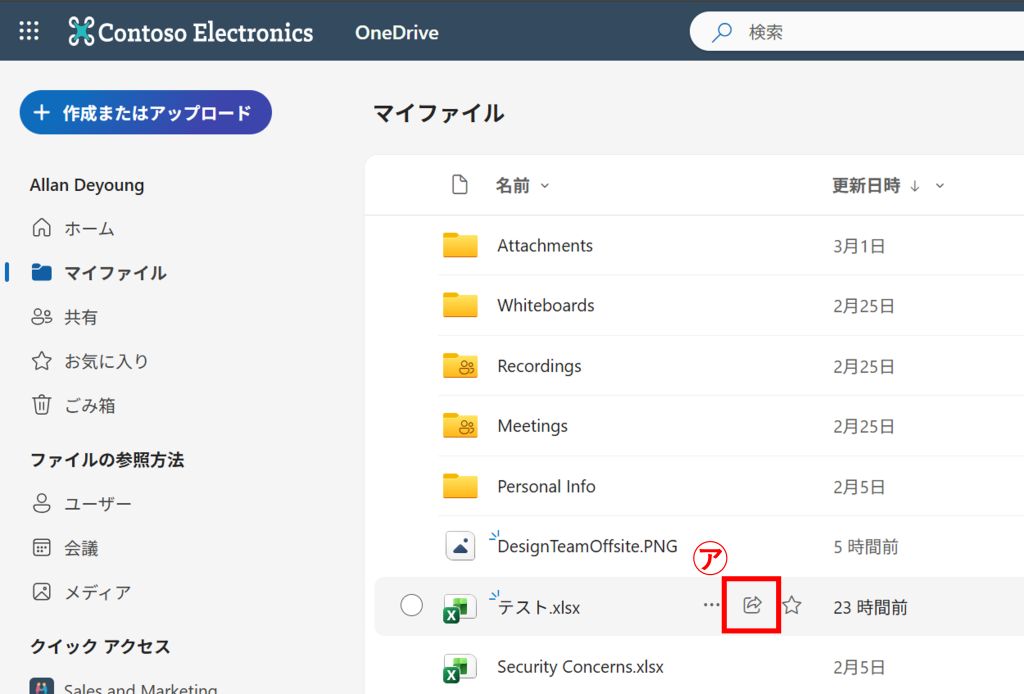 B:「共有」アイコンから開く方法(「マイファイル」以外の場所でも操作可能です)