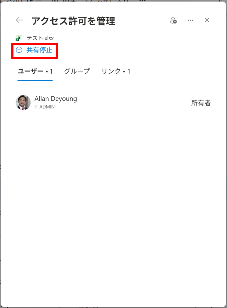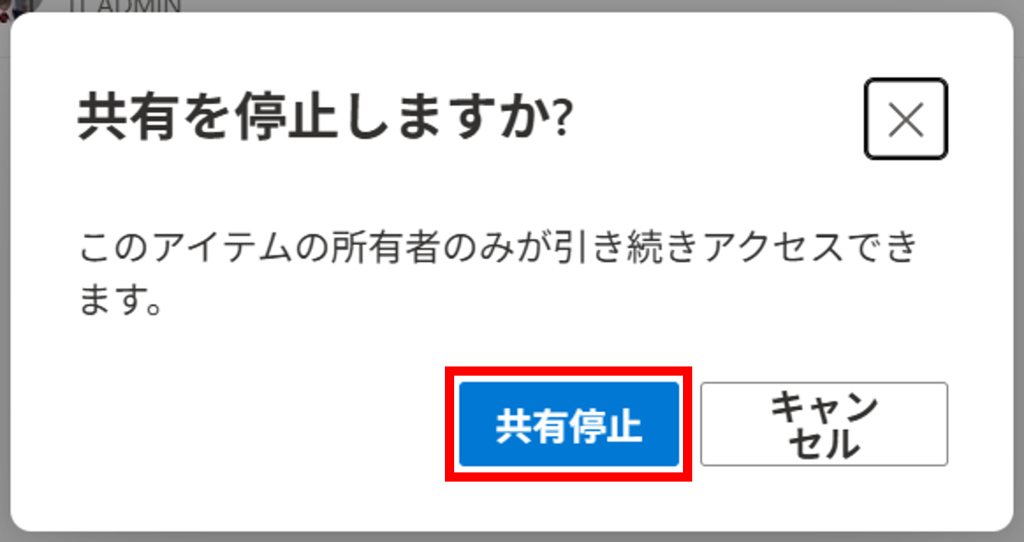 1.ファイルの共有を行うと表示されるようになる、「⊝共有停止」をクリックします。