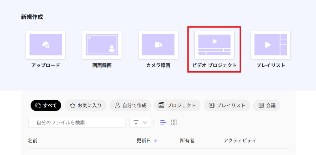 2.新規作成画面で「ビデオ プロジェクト」を押下します。