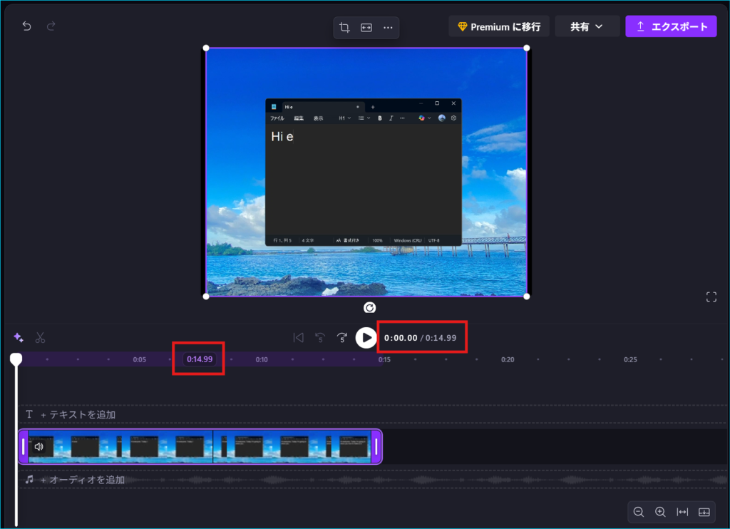 6.動画の末尾にカーソルを持って行くと長さの調整が行えます。